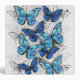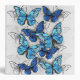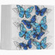 Vertical composition of realistic, blue and white morpho butterflies on gray textured background. Morpho blue butterfly.