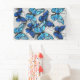 Vertical composition of realistic, blue and white morpho butterflies on gray textured background. Morpho blue butterfly.