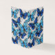 Vertical composition of realistic, blue and white morpho butterflies on gray textured background. Morpho blue butterfly.