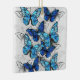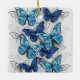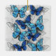 Vertical composition of realistic, blue and white morpho butterflies on gray textured background. Morpho blue butterfly.