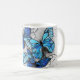 Vertical composition of realistic, blue and white morpho butterflies on gray textured background. Morpho blue butterfly.