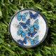Vertical composition of realistic, blue and white morpho butterflies on gray textured background. Morpho blue butterfly.