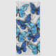 Vertical composition of realistic, blue and white morpho butterflies on gray textured background. Morpho blue butterfly.