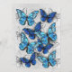 Vertical composition of realistic, blue and white morpho butterflies on gray textured background. Morpho blue butterfly.
