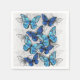 Vertical composition of realistic, blue and white morpho butterflies on gray textured background. Morpho blue butterfly.
