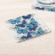 Vertical composition of realistic, blue and white morpho butterflies on gray textured background. Morpho blue butterfly.