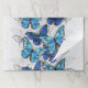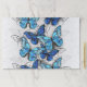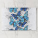 Vertical composition of realistic, blue and white morpho butterflies on gray textured background. Morpho blue butterfly.
