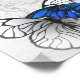 Vertical composition of realistic, blue and white morpho butterflies on gray textured background. Morpho blue butterfly.