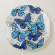 Vertical composition of realistic, blue and white morpho butterflies on gray textured background. Morpho blue butterfly.