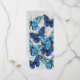 Vertical composition of realistic, blue and white morpho butterflies on gray textured background. Morpho blue butterfly.