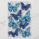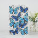 Vertical composition of realistic, blue and white morpho butterflies on gray textured background. Morpho blue butterfly.
