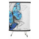 Vertical composition of realistic, blue and white morpho butterflies on gray textured background. Morpho blue butterfly.
