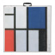 He was a contributor to the De Stijl art movement and group, which he co-founded with Theo van Doesburg. He evolved a non-representational form which he termed Neoplasticism. This was the new 'pure plastic art' which he believed was necessary in order to create 'universal beauty'. To express this, Mondrian eventually decided to limit his formal vocabulary to the three primary colors (red, blue and yellow), the three primary values (black, white and gray) and the two primary directions (horizontal and vertical). Mondrian's arrival in Paris from the Netherlands in 1911 marked the beginning of a period of profound change. He encountered experiments in Cubism and with the intent of integrating himself within the Parisian avant-garde removed an 'a' from the Dutch spelling of his name (Mondriaan). Quote:Wikipedia