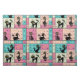 Mid Century Modern Color Scheme. Five black cats enjoying grid time in a Mondrianesque design.