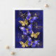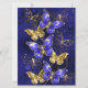 Composition of luxurious sapphire and gold jewelry butterflies on blue textured background.