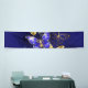 Composition of luxurious sapphire and gold jewelry butterflies on blue textured background.