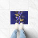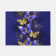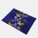 Composition of luxurious sapphire and gold jewelry butterflies on blue textured background.