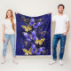 Composition of luxurious sapphire and gold jewelry butterflies on blue textured background.