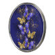 Composition of luxurious sapphire and gold jewelry butterflies on blue textured background.