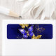 Composition of luxurious sapphire and gold jewelry butterflies on blue textured background.