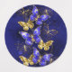 Composition of luxurious sapphire and gold jewelry butterflies on blue textured background.