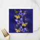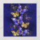 Composition of luxurious sapphire and gold jewelry butterflies on blue textured background.