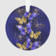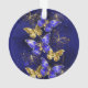 Composition of luxurious sapphire and gold jewelry butterflies on blue textured background.