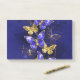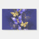 Composition of luxurious sapphire and gold jewelry butterflies on blue textured background.
