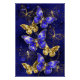 Composition of luxurious sapphire and gold jewelry butterflies on blue textured background.