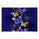 Composition of luxurious sapphire and gold jewelry butterflies on blue textured background.