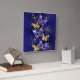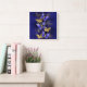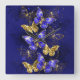 Composition of luxurious sapphire and gold jewelry butterflies on blue textured background.