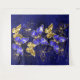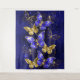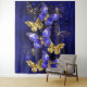 Composition of luxurious sapphire and gold jewelry butterflies on blue textured background.