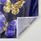 Composition of luxurious sapphire and gold jewelry butterflies on blue textured background.