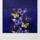 Composition of luxurious sapphire and gold jewelry butterflies on blue textured background.