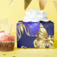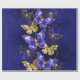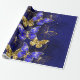 Composition of luxurious sapphire and gold jewelry butterflies on blue textured background.