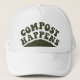 Compost Happens - garden humor cap in distressed green-brown lettering. Choice of hat colors.