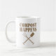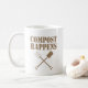Compost Happens! - gardening humor in brown stencil lettering with garden tools. Also available as a travel mug.