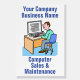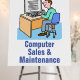 Foam board sign for a computer store, computer shop, or shared workspace. Computer user working at a desk.