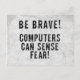 "Be Brave! Computers can sense fear!" Whether you´re a pc beginner or a seasoned geek - watch out for your computer, because they sense your fear and react accordingly! Who says computers are just machines!? Silly geek saying in distressed font.