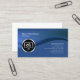 This simple elegant and professional PC repair business card features a blue background. A blue hued wave streams from the left to the right, splitting the card into two sections. A circular chrome computer gears icon sits on this wave, on the left side of the card, while your name and title appear on the upper left and your business name and contact details appear on the bottom right. Designed for businesses or professions related to computer, information technology, technical, engineering, network, laptop, it, computer repair, computer services themes.