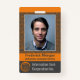 These photo ID badges for employees in the tech industry have an orange-and-gray theme. They include your employee's photo, name, and job title on the front, plus the name of the corporation / company and business logo. The back includes room for "if found" information (including address and phone number), plus space for an ID number and a bar code. The design also includes a circuit board pattern background. Use the easy template to personalize, and then use the design tool to make more detailed changes (such as adjusting the size of the logo or barcode or deleting and rearranging elements). This eye-catching design is perfect for an IT specialist, network administrator, systems analyst, computer programmer, software developer, cybersecurity expert, or any high tech business person.