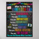 Awesome, beautiful and inspiring poster to decorate any computer lab. Design features bright and eye-catching colors and graphics against a faux chalkboard background. Help kids understand their importance and why you are here with this meaningful wall decor!