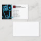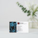 A cute and cool geeky robot face outlined in cyan peeps out at you on the left side of this business card, over a jet black background, while your company and personal details appear on the right over a white gradient. The simple yet informal design makes this a perfect business card for freelance IT workers or computer and technical related businesses and industries.