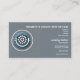 A settings gear icon with cables in a blue circle on a gray background makes a sharp and professional business card for a computer repair shop. Could also be used for a data recovery service, computer system builder, IT guru, or computer sales.