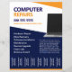 (Note: Tear-offs do not come precut) Stand out with this Computer Repairs, New Builds & Maintenance Flyer Template — a bold, modern design in navy blue and orange that instantly grabs attention. Perfect for tech professionals and repair shops, this customizable flyer showcases your services, contact details, and a short company write-up that highlights what makes you unique. Add your email and website for quick connections, and take advantage of the built-in tear-off tabs so customers can easily take your contact information home. Whether you specialize in computer repairs, custom PC builds, or system maintenance, this flyer helps you promote your services with style and confidence.