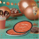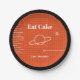Cute Eat Cake birthday paper plates for your space theme party. The background represents and orange computer screen where all the elements appear. Personalize it with your own message. Illustrated and designed by Patricia Alvarez.