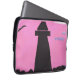 This computer sleeve is designed with a silhouetted lighthouse against a pink sunset sky.