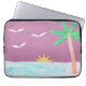 This computer sleeve is designed with an art scene of the sun rising over a blue ocean under a mauve sky.
