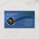 This simple elegant and professional PC technician business card features a blue background. A blue hued wave streams from the left to the right, splitting the card into two sections. A circular chrome computer tools icon sits on this wave, on the left side of the card, while your name and title appear on the upper left and your business name and contact details appear on the bottom right. Designed for businesses or professions related to computer, information technology, technical, engineering, network, laptop, it, computer repair, computer services themes.