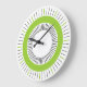 A clock face with a concentric circles design, in which rays are arranged to mark the minutes and hours in the outer circle. This version has a solid colored first inner circle and the second inner ring has minute rays. All the rays line up correctly and the hours are marked with a bolder colored line in the outer circle providing both a decorative but practical clock face.